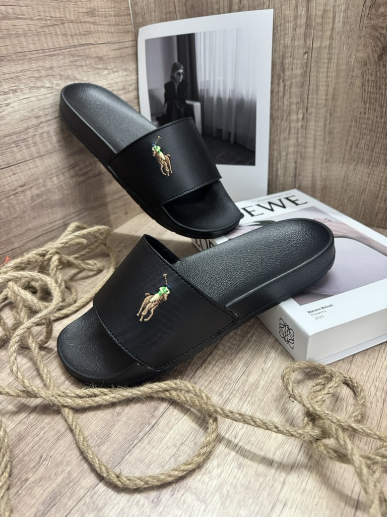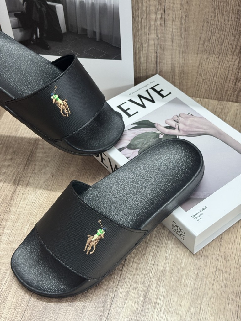 Dép Da Ohita Luk - Black Đen Khoá Vàng
